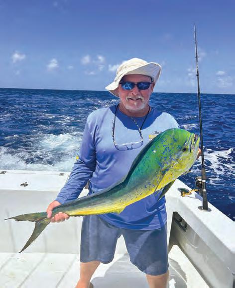 Be ready for that big bite on the light line by choosing your tackle wisely as well. Yes, you need to keep the leader ( oro and wire) size small to get the bites, but use the correct size hooks, reel and line capacity to handle bigger !sh. Like I mentioned earlier, this is the time of year when wahoo are everywhere...and nowhere. You could catch a giant wahoo or tuna inshore, or in the deep water, just be prepared for it and be ready to chase it down if need be. e kite is always a great option if you have the team that can y the kite and bottom !sh simultaneously as it can be a challenge with wind speed, direction and current.