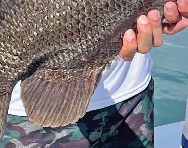 Another epic adventure took place during a sunset black n tuna mission. Capt. Bean knew ns, and they used light spinning tackle to make it more fun. It didn’t take more than a couple minutes for JD to get tight on a monster n. All you could hear was the reel screaming, and the rod was doubled over the whole ght. It was JD’s personal-