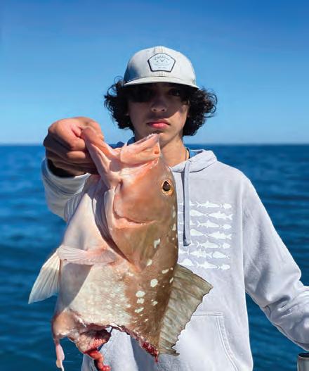 When we pulled up to a small set of rocks, there were two other boats there and four rods were doubled over! One of the boats was doing a bag check, and I watched him tossing and counting 15- to 20-pound snapper into the cooler. His count ended at 14, two shy of his limit… and they had two on the line. Keep in mind, at this time my personnel best snapper was about 8 pounds, and everything I was seeing was more than twice that size. e anticipation was high as I waited for the trolling motor to lock in.