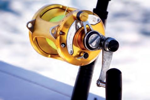 • When a sh swims or is pushed by waves or current into a snag-prone area, it’s o en counter productive to crank down and pull directly against the sh. Pulling hard works OK on small or mediumsized sh, but with larger sh I like to angle the rod horizontally and