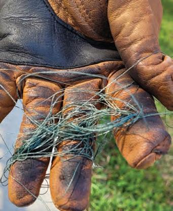 GEAR: I carry two rods, one for big fsh and one for smaller fsh, so I’ll be prepared for whatever I encounter. My lighter set-up is an 8-foot mediumaction rod with a spinning reel flled with 10- to 20-lb. braid attached to 12 inches of clear 30-lb. fuorocarbon leader.