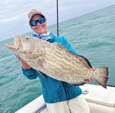 We were lucky to receive one of the tags to harvest a Goliath this year. Tere were specifc protocols to follow. Te FWC divided it into Category I and Category II, restricting the fshing areas. Additionally, there was a stipulation to use non-ofset, non-stainless steel hooks to improve survival chances. Tere was also a research element involved. We were issued a kit for taking samples and instructions on where to drop of the carcass afer our fsh was cleaned.