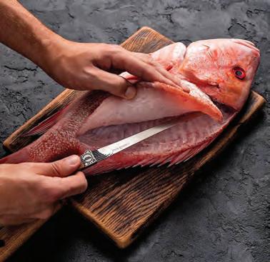 A llet knife’s handle is just as important as the blade, as comfort and grip can signi cantly a ect performance. When lleting sh, especially in wet and slippery conditions, a good grip is vital to prevent accidents and ensure precise cuts. Look for handles made from materials like rubber or thermoplastic, which provide a non-slip grip, even when wet. Ergonomically designed handles with nger grooves o er additional comfort and control.Wooden handles are another option, o ering a more classic aesthetic. However, they can be slippery when wet and require more maintenance to avoid damage from moisture.
