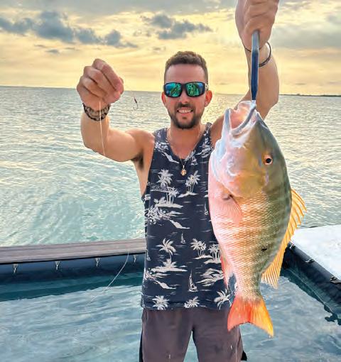 “We documented seven spawning events during the 2023-2024 spawning season,” said Dr. Boucek. “Four bonefsh tagged with archival depth measuring tags spawned during these events; three of the four fsh recorded maximum depths of 332 feet, 310 feet, 302 feet. Te fourth fsh recorded a maximum depth of 180 feet on its frst possible spawning or false spawning attempt. Te recorded spawning depth of approximately 300 feet is consistent between the Upper Key spawning site and the suspected spawning site near Key West, and with recorded spawning events in Te Bahamas.”