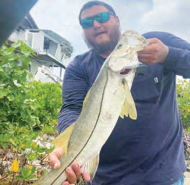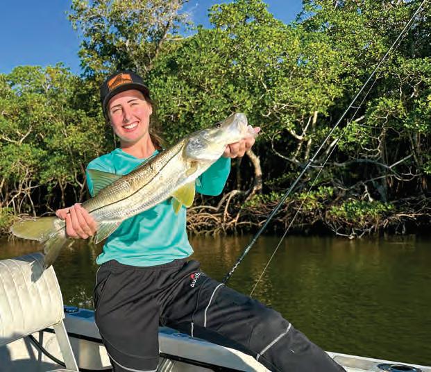 Capt. Adam White, of St. Lucie Flats Fishing on Florida’s Treasure Coast, said this time of year o ers good snook and tarpon shing in his area. Whether he’s shing bridges at night or inshore structure during the day, there are a lot of snook to be caught around Fort Pierce and a lot of places to catch them.