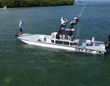 Check your sonar screen frequently and look for “scratches” or fsh feeding in the water column. We usually assign one person to call out depth changes along with depth of marked fsh. Tuna can be found from 250 feet up to the surface. Highspeed cruisers like wahoo and kingfsh prefer the upper 50 feet of water, while amberjack will be close to structure. Jigging and adjusting depth to target fsh is more efcient under electric power, and the most difcult part of the electric game is picking the right equipment that works together.