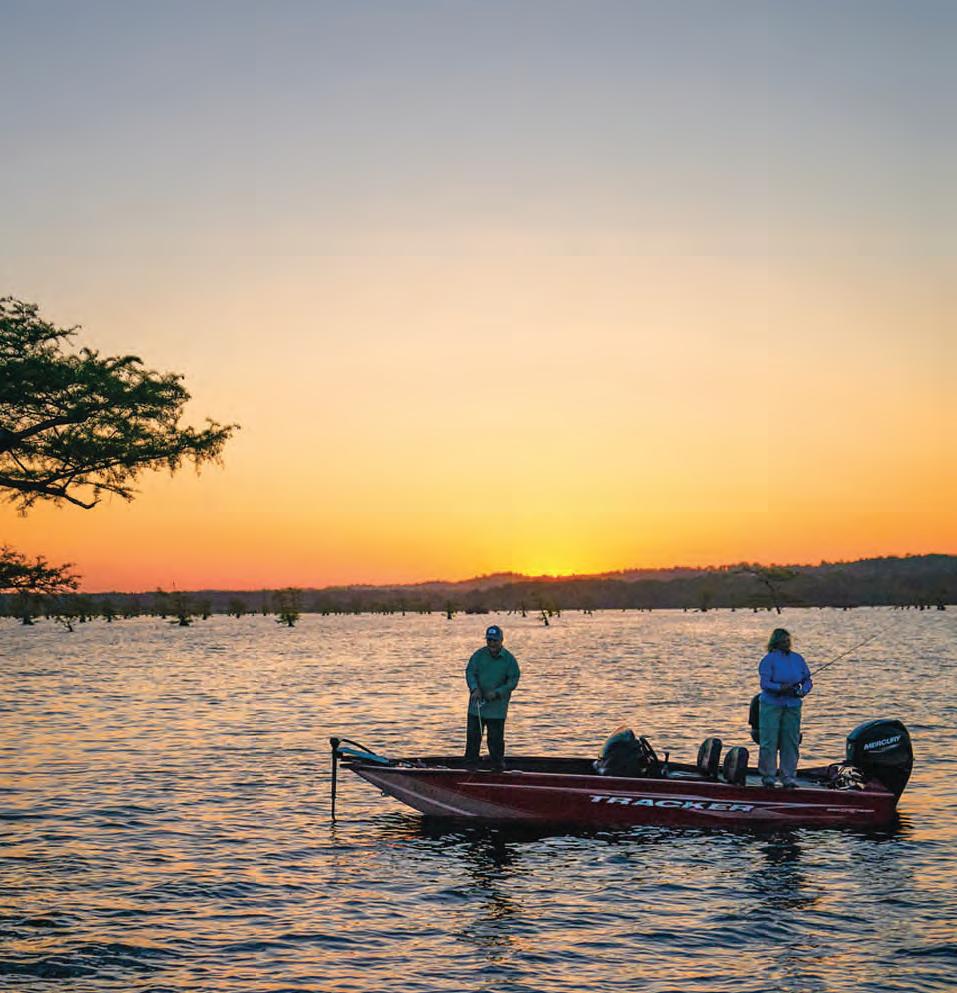 When the bite is hot, a good angler might boat 8 to 10 fsh, and 4- to 6-pound hybrids are not uncommon. “A 6-pound hybrid is going to fght like a 10-pound striper,” Moore said.