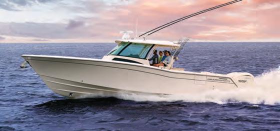 Embarking on an unforgettable journey is effortless in this center console designed for hardcore fishing adventures and making memories with family and friends. With plenty of premium standard features such as numerous rod holders in the cockpit and bow, deluxe lean bar, handlaid SeaV² hull and deck, large-capacity insulated fish boxes, a casting platform with cushion, port and starboard side doors, and more, hooking a winner is a smoother process. A dual diamond-stitched lounger, standup shower, and air conditioning are among the many creature comforts this model offers as well.