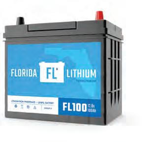 Fast forward 40 years, and Mike Sr. parlayed his experience with electronics to test and scrutinize a new generation of high-quality, fast-charging lithium batteries. Mike established a central Florida test lab and began ordering samples from several overseas manufacturers. Even the platinumtier manufacturers provided varying quality in components, cells, boards and overall inconsistent construction. Several years later, with a select group of top-tier vendors, Florida Lithium was launched to provide bestin-class deep cycle-dual purpose (800 cranking amps) LifePO4 batteries that meet or exceed all Mercury requirements for lithium batteries. Today, Florida Lithium’s product line ranges from 12V, 36V and 48V batteries, providing versatile options for cranking, house electronics, or trolling motor applications. Teir DeLand warehouse is available for pickups Monday through Friday (by appointment only), and they ofer shipping nationwide. Florida Lithium also provides batteries and accessories to marine dealers, boat builders and marine service/repair shops throughout the Southeast.