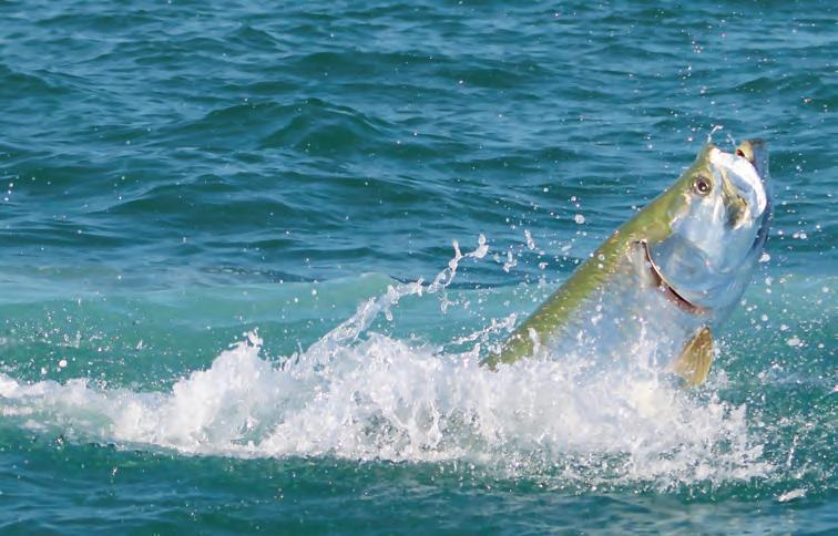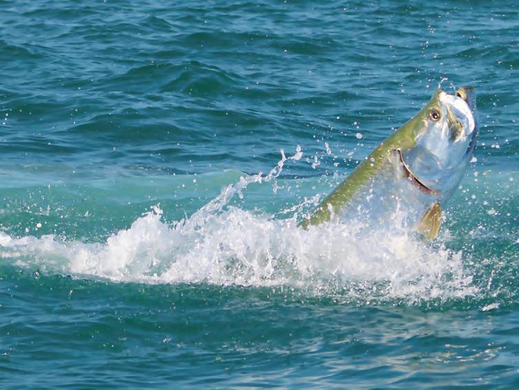 In around fve to six feet of water, grass growth stops, forming a natural erosional edge where fsh like trout, cobia, tarpon, and mackerel hunt. Tese edges act like a “superhighway” for predatory fsh. While smaller fsh are found on the fat, the big ones hang near the edge, diving into the deeper channel when necessary.