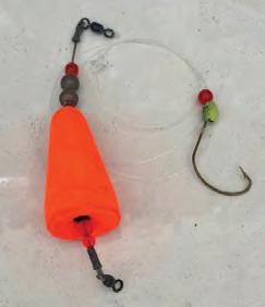 As a charter captain, I’ve found this method efective for anglers of all experience levels. It’s not uncommon to catch 80 to 100 fsh during a four-hour trip using this rig. It works equally well ofshore near wrecks, suspending bait for species like permit.