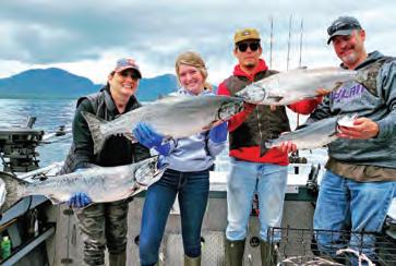 But salmon are not all visitors can expect to catch in this world-renowned shery. As an experienced captain who runs daily charters out of Ketchikan during the season, I still nd myself surprised by the productivity of these waters. Along with ve species of salmon, we also land big halibut, giant lingcod, paci c cod and rock sh in our daily catch limits. e shing is superb, and so is the wildlife watching. Hit the water with us, and I will gladly hand over the binoculars when marauding pods of orcas show up on the surface or when magni cent humpback whales breach. We share these waters with eagles, sea lions and so much more. It makes a perfect shing getaway for the entire family.
