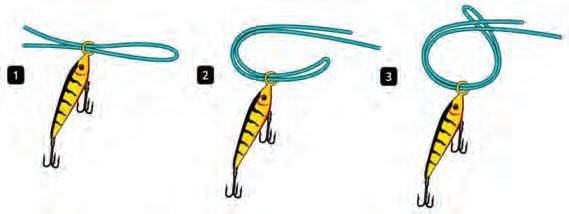 A“double tackle” is what I call rigging two lures on the same main line. In certain situations, this appearance of a school of eeing bait sh or shrimp is irresistible to predators, and I’ve got a clean and simple way to rig a double tackle.