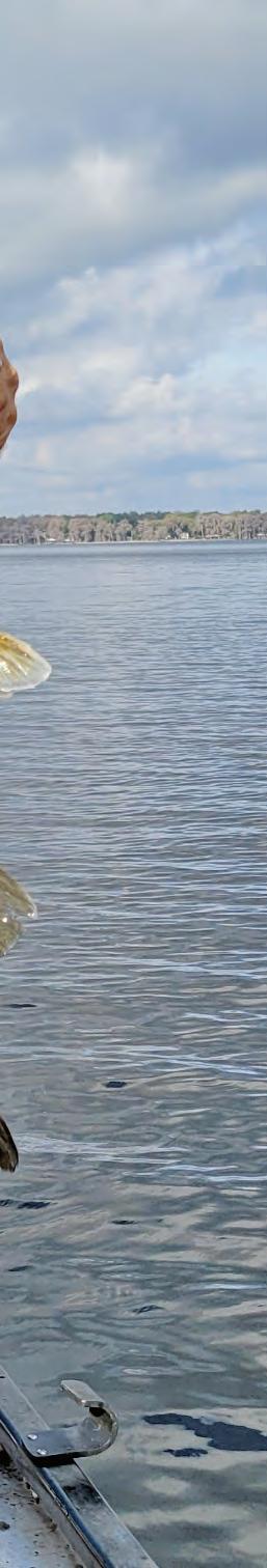 Di erent social media platforms also keep you in tune. Find reputable anglers or guides in your area or an area you plan to go. Some frequently post how-to or what’s been working for them. ey might also talk about how to approach a certain area. If you like to travel to new areas, which I do, knowing how to approach an area can be key. In my local waters, we might approach a spot one way, but if I go to another state they may do the opposite. Knowing the local game plan can save the day.