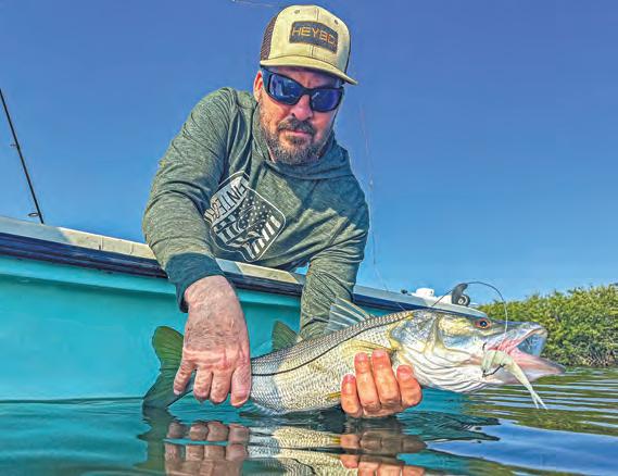 One fall morning in central eastern Florida, I was fshing under a dock with a Zara Spook. During my retrieve, an explosion broke the water in a way I had never seen in 35 years of fshing. I stood in shock as line peeled of my 4000-size Penn Battle II combo. When the fsh jumped, I saw it was in the mid-40-inch range, and as is frequently the case with big snook, she played with me for a while before bolting into the pilings to break me of. Tis monster would have been my personal-best.