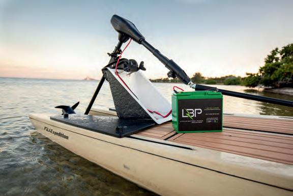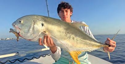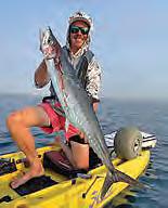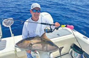 Check your sonar screen frequently and look for “scratches” or fsh feeding in the water column. We usually assign one person to call out depth changes along with depth of marked fsh. Tuna can be found from 250 feet up to the surface. Highspeed cruisers like wahoo and kingfsh prefer the upper 50 feet of water, while amberjack will be close to structure. Jigging and adjusting depth to target fsh is more efcient under electric power, and the most difcult part of the electric game is picking the right equipment that works together.