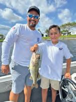 I fnd that keeping your bait small helps attract the bite. It is benefcial to keep a tight line, as the bites can be very light. One tactic that served my son well was to walk toward the back of the boat and away from the structure once a fsh was hooked. Tis assisted in pulling it away from the structure. Trying to manhandle the fsh out on light tackle would certainly have led to some break-ofs.