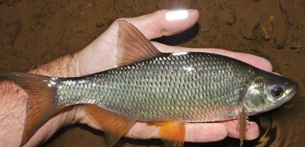 e Salminus Brasiliensis is certainly not related to salmon, but is of the order Characiformes which includes many species— notably vampire-fanged payara and modern cinema star piranha in South America and tiger sh in Africa. Redundantly named the golden dorado (dorado means “golden” in Spanish), it’s immensely powerful, acrobatic—and magni cently beautiful.