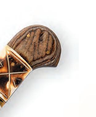 • Full-tang construction. Handle of genuine, natural white bone that’s been hand-carved and torched
