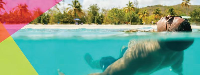 With no passport required for U.S. citizens, from the moment you arrive, the islands’ natural rhythm is palpable. e gentle sway of palm trees, the soothing sound of surf crashing against sandy shores, and the vibrant melodies of local music all echo the heartbeat of this tropical paradise. e islands’ lush landscapes, with their verdant hills and crystal-clear waters, mirror the steady pulse of life that sustains the local ecosystems and communities alike.