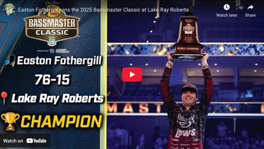 Sunday afternoon, March 23, in front of thousands of fans at Dickies Arena, Fothergill stood tall as champion of the 2025 Bass Pro Shops Bassmaster Classic presented by Under Armour.