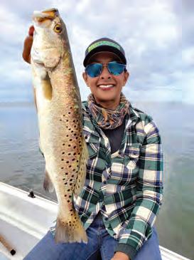 abundant amount of the big three: trout, redfish and flounder. It will not be uncommon to find all three in the same location gorging themselves on last spring’s hatch of shrimp and finfish. I will predominantly throw smaller soft plastics in the 3.25-inch size. I like a durable lure because the action can be fast and furious, and I don’t want to waste time changing out lures after one or two fish and miss my opportunity for more. I lean toward paddletails because I can work them faster, cover more water, and the added