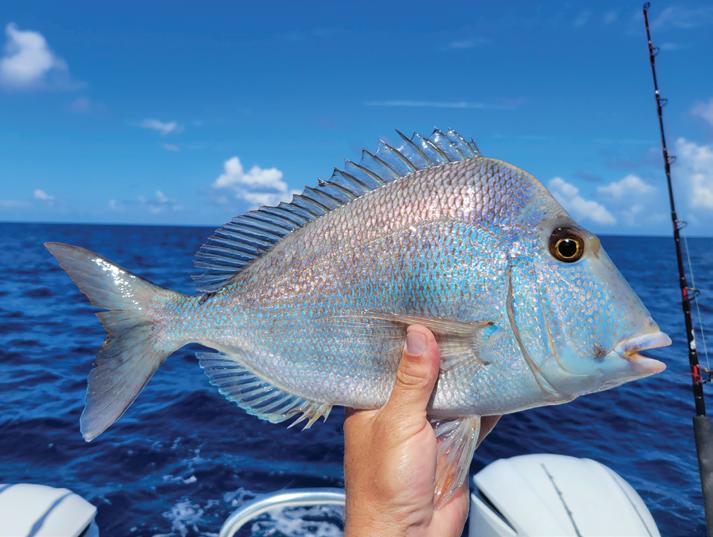 I love yellowtail and a mangrove snappers, but I really like jolt heads, trigger sh, pinkies, black seabass and hog snapper. I treat bottom shing like I’m going (organic) grocery shopping. First and foremost, I don’t shop on every aisle of the grocery store. I go down the aisles that contain the items I really want. e best groceries come from di erent places on the bottom and from di erent depths.