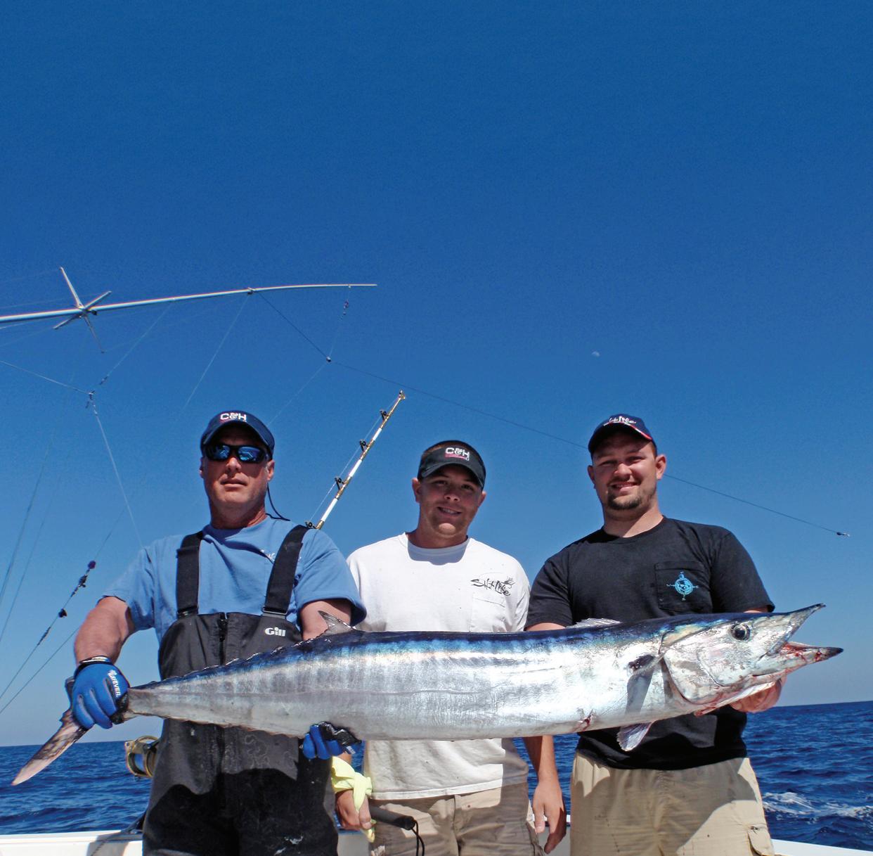 Depth changes and structure at the edge of the Continental Shelf, combined with warm 70 to 80 degree waters of the Gulf Stream can be found 50 or 60 miles o the coast. ese structures hold bait sh in the temperature range where wahoo are comfortable. Covering lots of water with high-speed spreads trolls up the best wahoo of the year, every year.