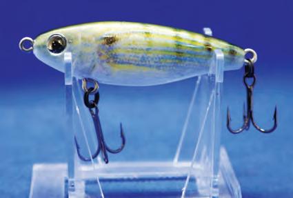 slower sink allows for dual bene ts this time of year. Logically, the slower sink rate matches the slower mood of a cold sh. Also, I spend a lot of time targeting sh over shallow grass in knee-deep water. A slower sink rate keeps my lure in the strike zone longer before it disappears into the grass.