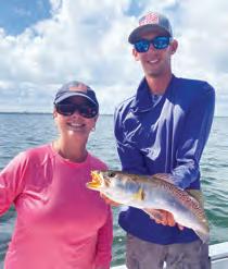 bait ushed from the bays with the dropping tides are followed by hungry specks and reds. In these situations, I like to use a smaller lure. Generally, they feed on shrimp or smaller bait sh, and having a lure of similar size is a good idea. When they are following these schools, I like non-natural colors so the sh have something to key in on when bait is abundant. I like my lure’s color to stand out in the fall feeding frenzy.