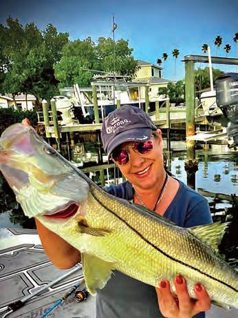 All joking aside, I believe the best bite for older, wiser, heavily pressured fsh is at night. Tey’re a little more at ease afer the sun goes down and the boat trafc lets up. Tis is when the big girls let their guard down and come back into shallower water to feed. Wherever you fnd shrimp and small mullet along the edges is a good place to take advantage of aggressively feeding redfsh, trout or snook afer dark. Te patterns are similar for all of them.