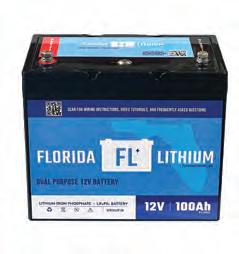 Fast forward 40 years, and Mike Sr. parlayed his experience with electronics to test and scrutinize a new generation of high-quality, fast-charging lithium batteries. Mike established a central Florida test lab and began ordering samples from several overseas manufacturers. Even the platinumtier manufacturers provided varying quality in components, cells, boards and overall inconsistent construction. Several years later, with a select group of top-tier vendors, Florida Lithium was launched to provide bestin-class deep cycle-dual purpose (800 cranking amps) LifePO4 batteries that meet or exceed all Mercury requirements for lithium batteries. Today, Florida Lithium’s product line ranges from 12V, 36V and 48V batteries, providing versatile options for cranking, house electronics, or trolling motor applications. Teir DeLand warehouse is available for pickups Monday through Friday (by appointment only), and they ofer shipping nationwide. Florida Lithium also provides batteries and accessories to marine dealers, boat builders and marine service/repair shops throughout the Southeast.