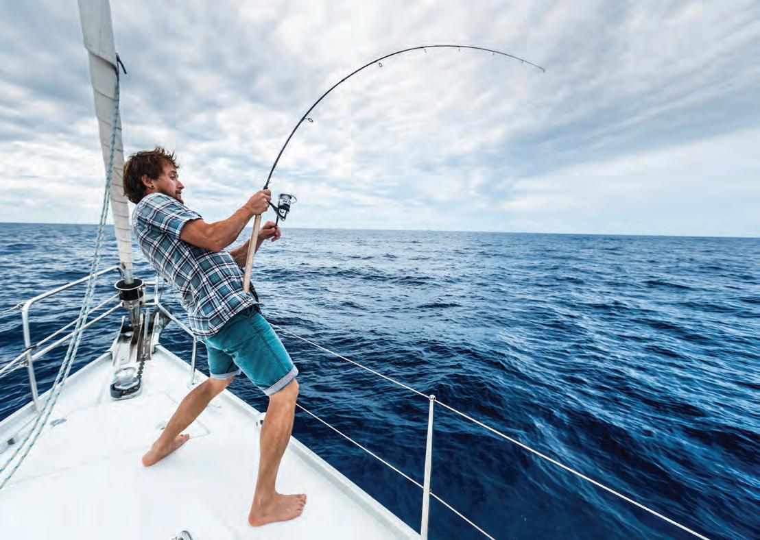 Cobia are known for powerful runs, ofen scoping up and switching directions in a split second. Keep calm, adjust your drag, and let them exhaust themselves. Stay alert as you reel in your cobia, as they are known for sudden maneuvers, and will sometimes dart under the boat in a heartbeat. And the fght doesn’t end even afer you’ve gafed a cobia. Exercise caution when you bring them over the rail and onto the deck because they ofen cause havoc on the boat. It’s best to tire them out completely during the fght to minimize potential damage.