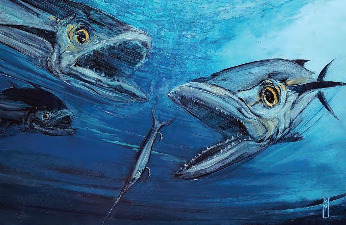Te most important thing to remember when hooking a cobia is to be ready, as it’s very common to spot “following” cobia. Tey ofen travel together and like to investigate what your hooked cobia is doing and eating. Tese “followers” can lead to an epic double header, but only if you have enough rods rigged and ready on the boat and hands to cast them.