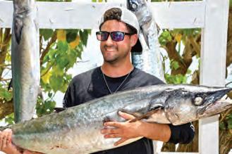 Te tactics are the same and simple. Tey will eat dead or live bait in most cases. Tat said, I found a combination of the two to be the best bet. I like to start with “stinky bait.” Dropping some frozen squid or menhaden is a great way to get the bite going. Once the bite starts, which is usually quickly if they are around, I like to switch to palm-size live pinfsh to entice the bigger fsh. While dead bait and jigs will certainly get you keepers, the larger fsh are quicker to hit a live bait.