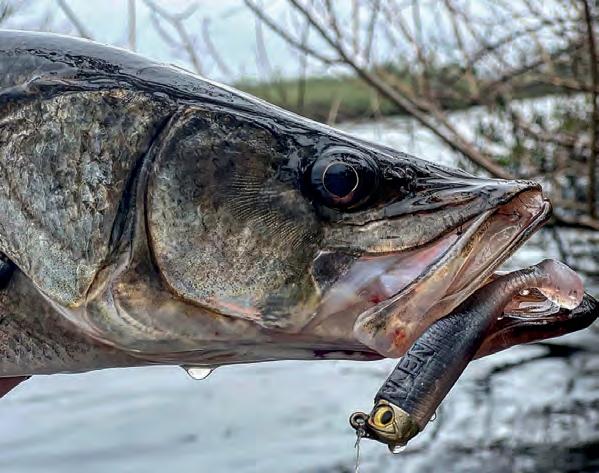 All joking aside, I believe the best bite for older, wiser, heavily pressured fsh is at night. Tey’re a little more at ease afer the sun goes down and the boat trafc lets up. Tis is when the big girls let their guard down and come back into shallower water to feed. Wherever you fnd shrimp and small mullet along the edges is a good place to take advantage of aggressively feeding redfsh, trout or snook afer dark. Te patterns are similar for all of them.