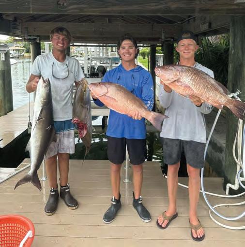 Back to noise... Keep in mind that while we hear very little, fsh hear everything. Sound travels far underwater, and everything you do on deck—slamming cooler lids, dropping hard objects, loud music, yelling—is heard by the fsh. It could be the diference between catching smaller cows or big bulls. Large male groupers didn’t get old by being dumb. You don’t kill big bucks by being noisy, so treat your fshing with the same respect.