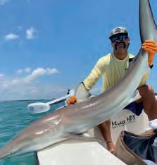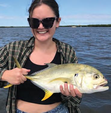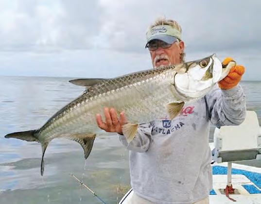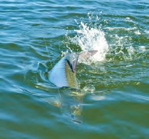 In around fve to six feet of water, grass growth stops, forming a natural erosional edge where fsh like trout, cobia, tarpon, and mackerel hunt. Tese edges act like a “superhighway” for predatory fsh. While smaller fsh are found on the fat, the big ones hang near the edge, diving into the deeper channel when necessary.