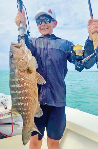 f course, October is when it all starts, but if you like to bottom fsh, then November is the month the turbo kicks in, leading to the crescendo of the year… December. I’ve always said the week of Christmas is the apex of the grouper fshing calendar, and I’ll stand by that statement now. Tis is when larger (male) gags move inshore to establish their territory on inshore ledges, wrecks, and live bottom, much like buck deer making scrapes and rubs to mark their territory. Tese males now wait for the smaller females to show up in numbers to spawn, and the bite traditionally goes of the charts.