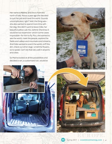 Her name is Marina, and she is from the north of Italy. About a year ago she decided to quit her job and travel the world. Sounds uncomplicated, right? Well, the thing was— she also wanted to spend more time with her dog. She didn't want to leave Odie, her beautiful yellow Lab mix, behind. She knew it would be too expensive—and in some cases impossible—for him to fly. Plus, she wanted to see the world, meet the people, explore the fields and valleys and mountains and streams. And Odie wanted to scent the world, sniff the dirt, check out other dogs—smell the flowers, so to speak. Can't do that very well in airports and cities.