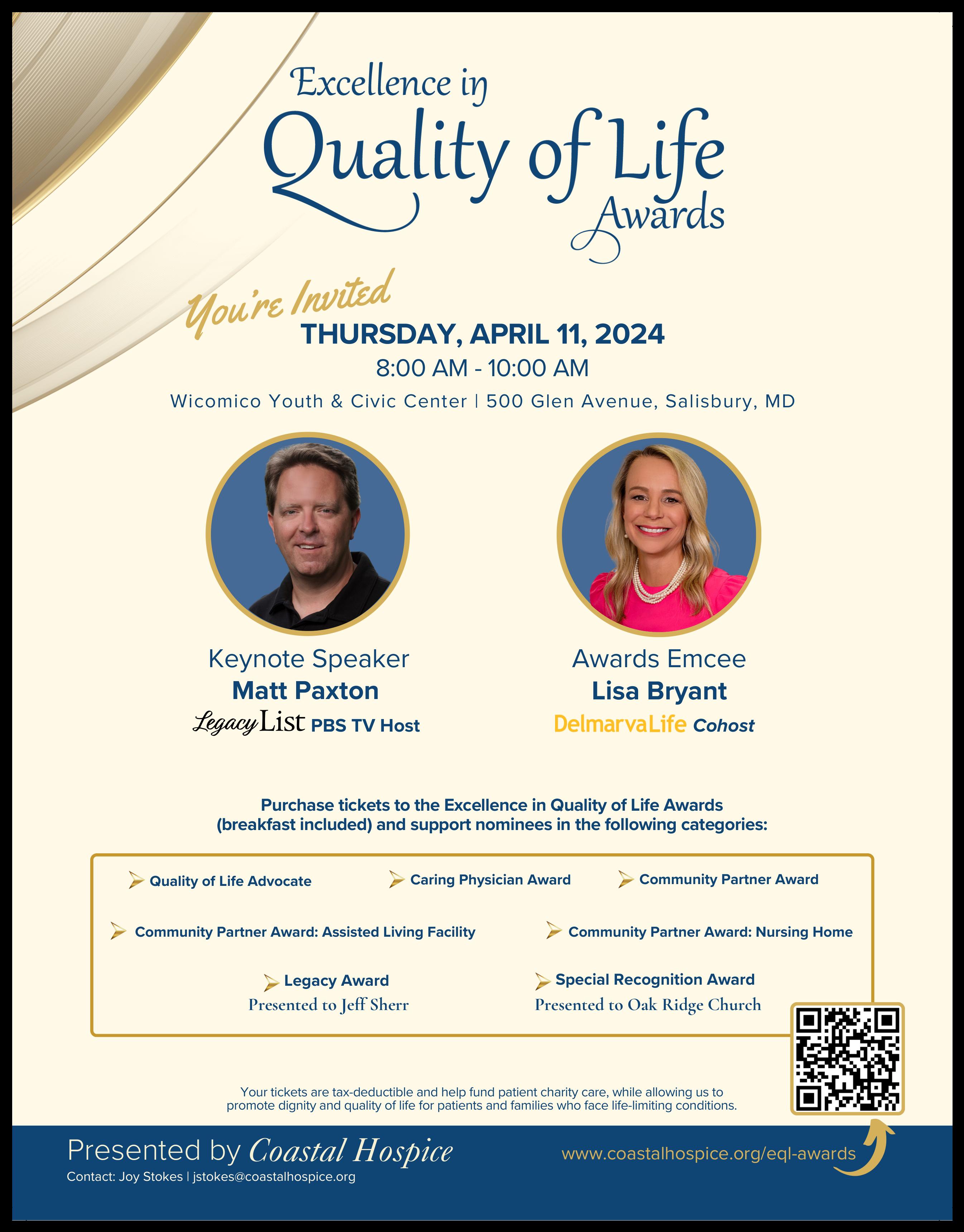 Coastal Hospice News is a quarterly publication edited by the Coastal Hospice Communications Department. 410-742-8732 ext. 537 communications@coastalhospice.org