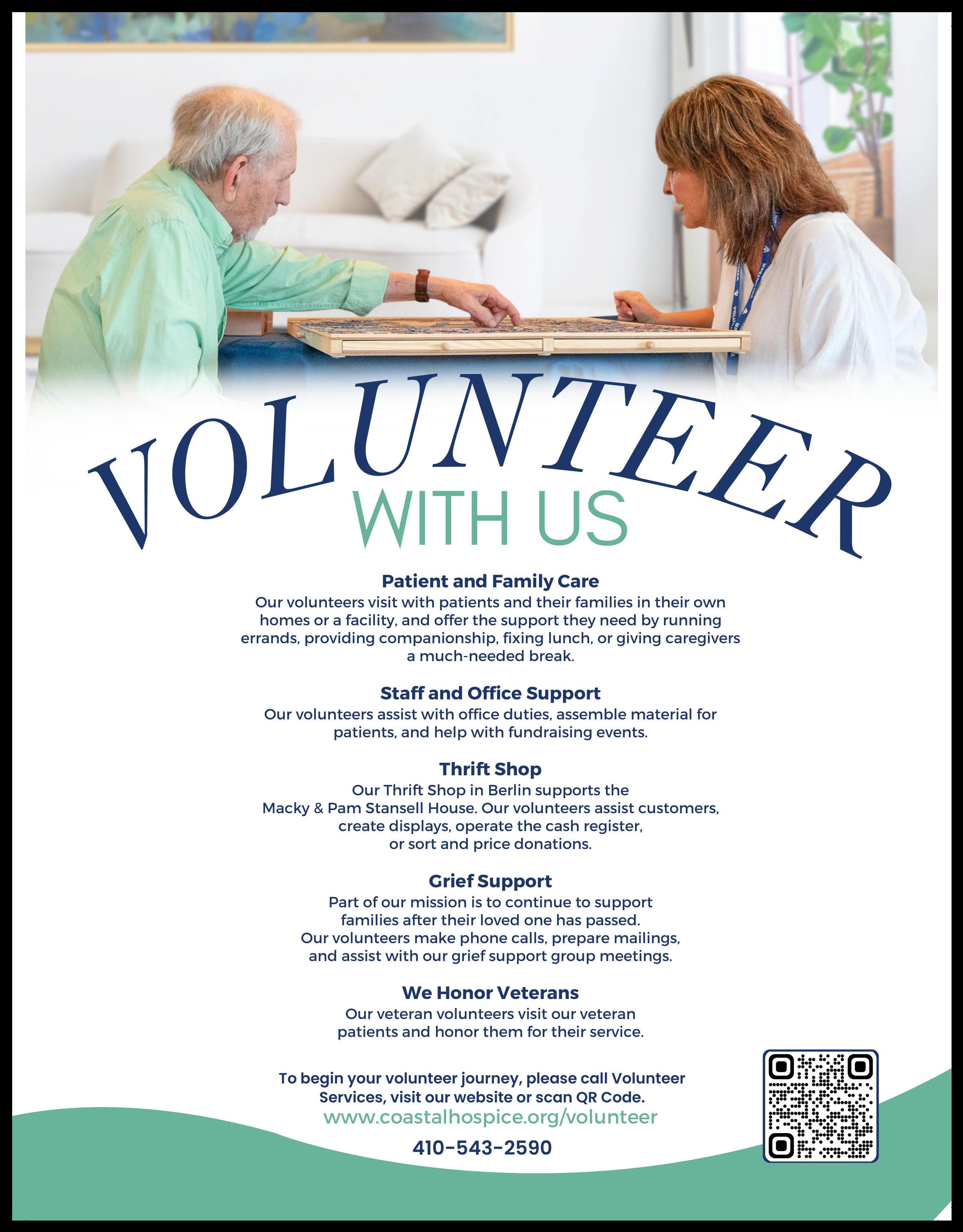 Maggie wants the community to know that the opportunity to volunteer is rewarding in many ways. She encourages the community members in our four Lower Eastern Shore Communities to take the leap and o become a Coastal Hospice Volunteer. “I would not have met so many people and made so many memories unless I volunteered.”