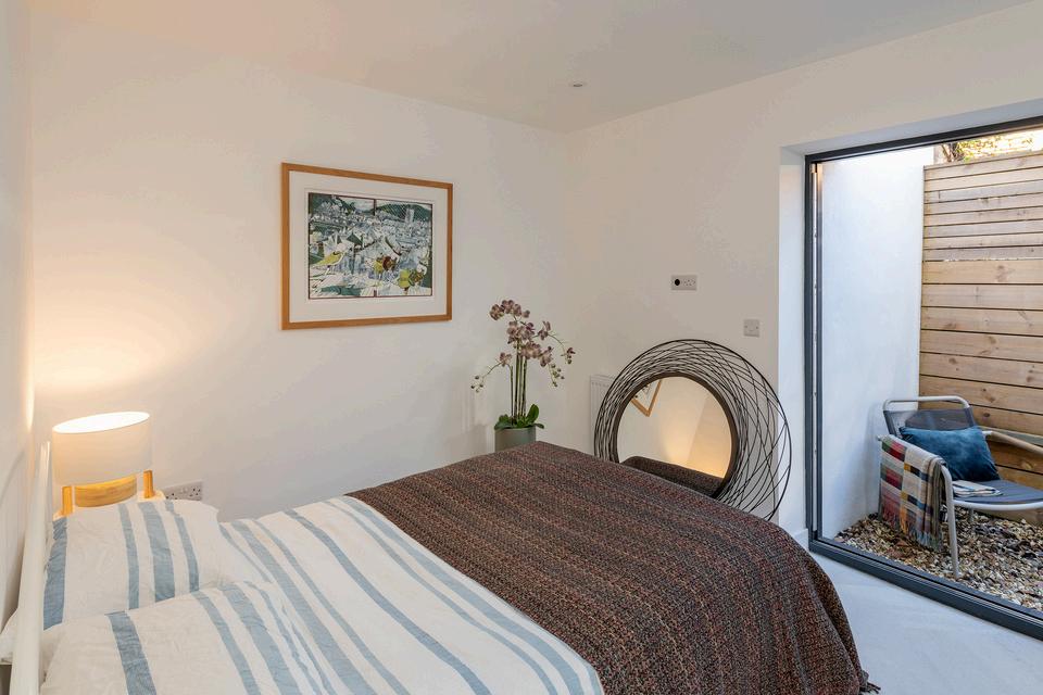 Underfoot, contemporary flooring leads to two spacious Bedrooms, one with a modern En-suite Shower Room, the second with an En-suite Bathroom and access to its own private Courtyard