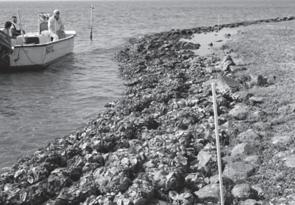 Springer’s Point is an ecological gem, recognized by the N. C. Natural Heritage Program as a natural heritage site of statewide significance. It is culturally significant and it receives thousands of visitors annually. The Coastal Land Trust purchased its 122-acre Springer’s Point Preserve to protect its existing maritime forest and coastal marsh as well as its recre ational and cultural values. Areas that are now eroded previously served as important buffer to the maritime forest, and they were widely utilized by Preserve visitors. Unfortunately, the shoreline at the Preserve does not func tion like a natural shore system, which “rolls back” with coastal storms and then re-builds over time. This is due to the fact that the Preserve’s shoreline had previously been altered by a jetty and concrete rip-rap, and because ad joining developed properties prevent roll back and re-building. As a result, areas behind and south of the old concrete rip-rap became scalloped out and eroded.