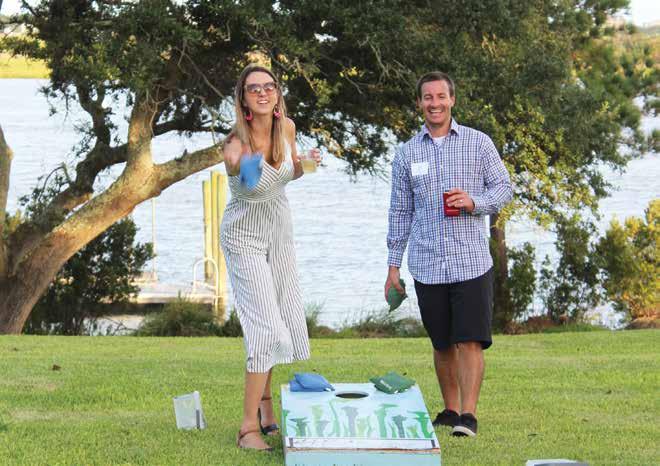 Erin and Paul Blalock team up for a game of cornhole. Paul’s company, Wells fargo, was the title sponsor for the celebration.