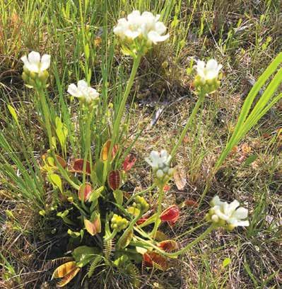 Left: Venus flytraps bloom at the Stanley Rehder Carnivorous Plant Rehder Garden. read more about the garden in “Conserved Lands We Love and Why,” page 5.