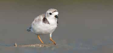 Above: The Coastal Land Trust has purchased Hutaff Island, the last privatelyowned undeveloped barrier island in North Carolina, along with the adjoining 1,000 acres of salt marsh with shrub and forested islands. The natural barrier island provides essential habitat to plants and animals, including shorebirds such as the piping plover shown at right.