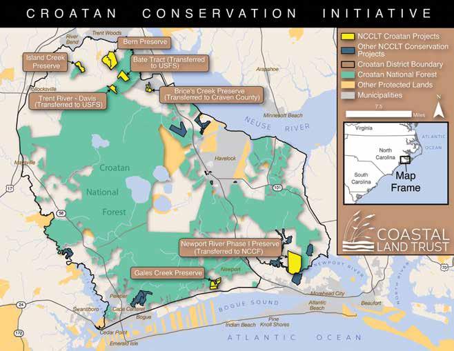 Protecting land around the Croatan National Forest has been one of the Coastal Land Trust’s highest priorities over the past 30 years. To date, NCCLT has protected more than 7,800 acres within the Croatan District boundary through 40 transactions (see map, page 5).