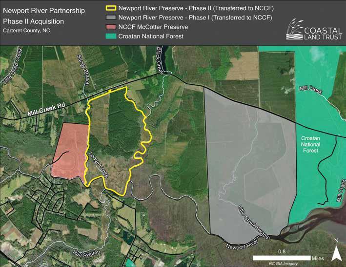 land along the Newport River. The first phase, completed in 2023, protected 1,436 acres located just downstream from this newest conservation project (featured in the Summer 2024 edition of Coastlines).