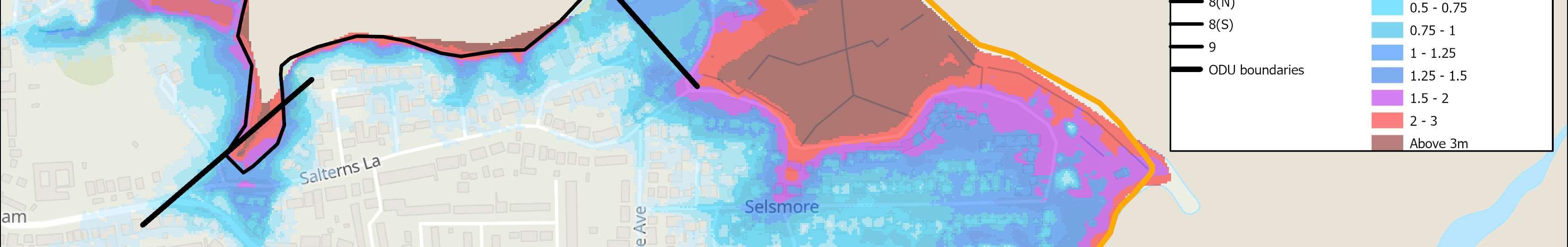 Themapsbelowshowthemodelledextentanddepthsofanextremetidalfloodevent(1in200year,0.5%annual probability),withoutanydefences,todayandin100years,allowingforsealevelrise.